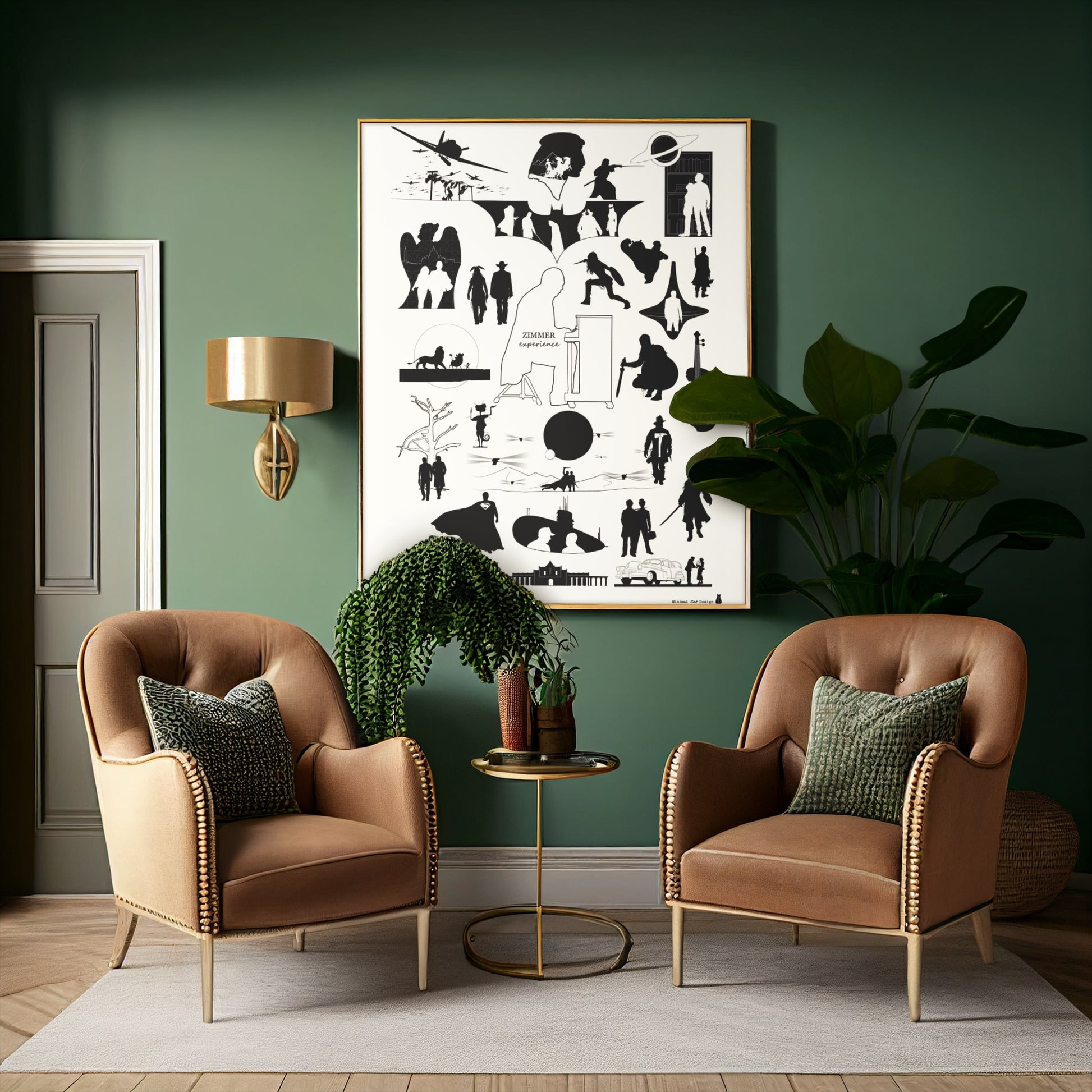 Hans Zimmer ha marcado generaciones con su música icónica. Este póster es perfecto para estudios, salones musicales y amantes del cine.